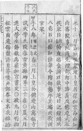 冬 十 二 月 占 城 引 還 . [7a*1*1] Đông thập nhị nguyệt, Chiêm Thành dẫn chúng hoàn. 上 皇 居 葆 和 宫 命 僉 知 内 院 事 阮 茂 先 禮 部 郎 中 潘 義 及 僊 遊 武 德 侯 家 臣 缺 名 輪 直 . [7a*1*10] Thượng hoàng cư Bảo Hoà cung, mệnh Thiêm tri nội mật viện sự Nguyễn Mậu Tiên, Lễ bộ lang trung Phan Nghĩa cập Tiên Du Vũ Đức hầu gia thần [khuyết danh,] luân trực. 賜 食 詢 以 故 事 逐 日 記 錄 編 成 八 卷 目 曰 葆 和 餘 筆 令 陶 師 錫 序 其 端 以 教 訓 官 家 . [7a*3*8] Tứ thực, tuân dĩ cố sự trục nhật ký lục biên thành bát quyển mục, viết Bảo Hoà dư bút, lệnh Đào Sư Tích tự kì đoan dĩ giáo huấn Quan gia. 甲 子 八 年 明 洪 武 十 七 年 春 二 月 上 皇 於 僊 遊 山 萬 福 寺 試 太 學 生 . [7a*6*1] Giáp Tí bát niên, [Minh Hồng Vũ thập thất niên,] xuân nhị nguyệt, Thượng hoàng ư Tiên Du sơn Vạn Phúc tự thí Thái học sinh. 段 春 雷 黄 晦 卿 等 三 十 名 〇 . [7a*7*5] Đoàn Xuân Lôi, Hoàng Hối Khanh đẳng tam thập danh . 夏 五 月 選 太 學 生 餘 數 為 葆 和 宫 書 史 〇 . [7a*7*16] Hạ ngũ nguyệt, tuyển Thái học sinh dư số vi Bảo Hoà cung thư sử . 秋 九 月 明 初 征 雲 南 . [7a*8*14] Thu cửu nguyệt, Minh sơ chinh Vân Nam. 遣 楊 盤 許 原 等 賫 户 部 咨 文 來 求 粮 給 . [7a*9*4] Khiến Dương Bàn, Hứa Nguyên đẳng tê Hộ bộ tư văn lai cầu lương cấp..